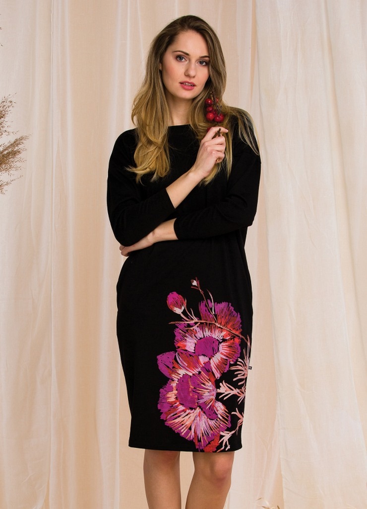 Сорочка женская для дома и отдыха LHD 902 от европейского производителя KEY. Модель с карманами и длинными рукавами. Материал французский футер без начеса.